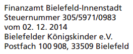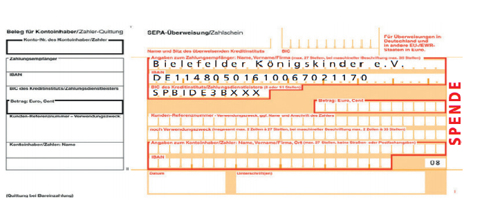 Sie können Ihre Spende steuerlich geltend machen. Wenn Sie uns Ihre Adresse mitteilen, stellen wir Ihnen gerne eine Spendenbescheinigung aus. Spende bis zu einer Höhe von 200 € werden von den Finanzämtern ohne Zuwendungsbestätigung anerkannt, der Einzahlungsbeleg/Kontoauszug dient als Nachweis.